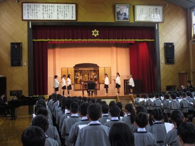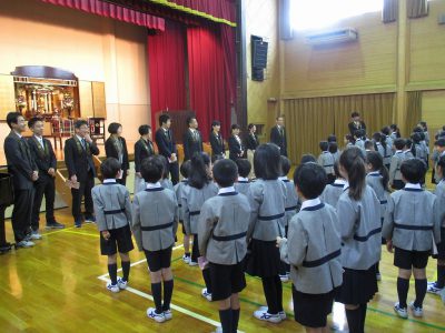 練習が終わり、児童会代表から、新任の先生に「歓迎のスピーチ」がありました。
