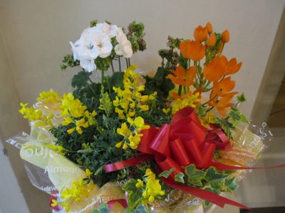 玄関にもお花が飾られ、新学期初日を彩りました。