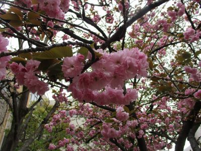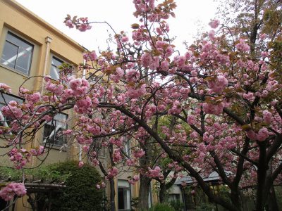 学園の正門に入り、子ども達を待っていたのは、満開の八重桜です!
