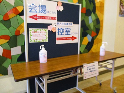 今朝も、新1年生・在校生みんなが、消毒をして教室に入りました。