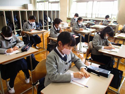 教室で見守ってくれてた在校生は、3時間、学習に励みました。