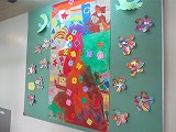 廊下前の掲示です。各所から「お祝い電報」をたくさん頂きました。