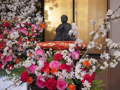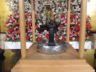 1年生達や保護者の方々が、お釈迦様に甘茶をかけました。