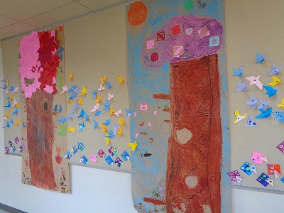 廊下掲示も、文教キッズの作品で、楽しさ、明るさ満載です。