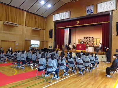児童会代表の6年生より「お祝いの言葉」の挨拶がありました。