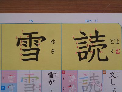 今日は「読」「雪」の2文字です。下じきの準備は、できているかな?