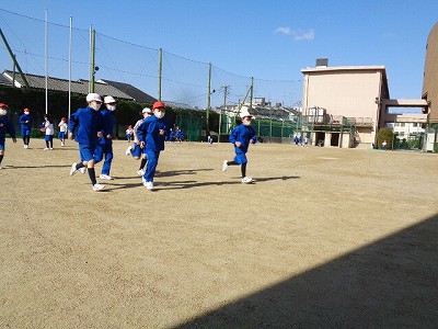 気持ちの良い青空の下、先生に負けじと全力を出して走っていました。