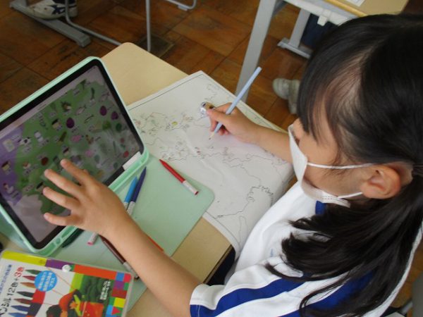 有名な特産物を書き込んだり、と一人一人がいろいろな工夫をして取り組んでいました。