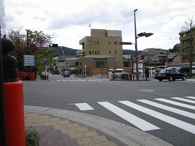 「仁王門通り」と「神宮道」の交差点です。横断歩道をわたり、さらに東へ、