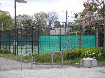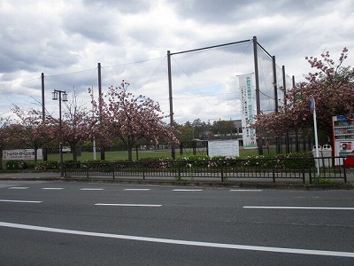 「岡﨑通り」と「二条通り」の交差点を左にまがり、西へ向かうと、テニスコート、野球などができるグランドがあります。今は、閉鎖中です。