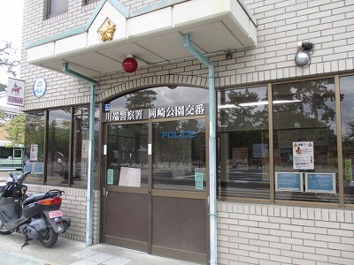 「神宮道」と「二条通り」の交差点です。南西の角に「川端警察署 岡﨑公園交番」があります。
