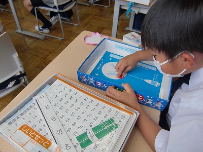 おはじきを指ではじく「おはじき入れ」から始めました。