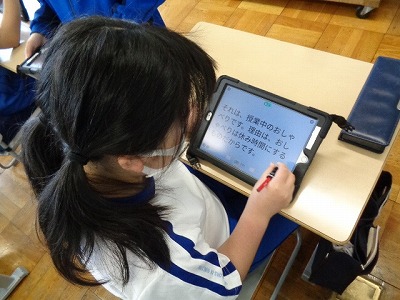 自分達のクラスのおしいところや良いクラスに向けて何が大切か。改善するためにどんなことができるかなどを考え、タブレットのテキストに書き込みました。