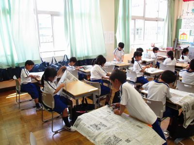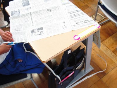 今日の図工の学習は、「新聞紙で遊ぼう!」の第2回目です。