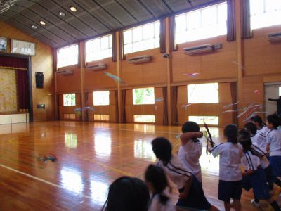 投げる方向に気をつけて、みんなで一斉に投げました。
