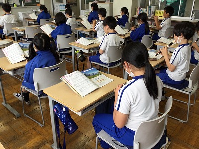 久しぶりのリコーダー練習です。???と基本の指使いを忘れてしまっている4年生が目立ちました。