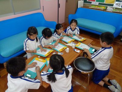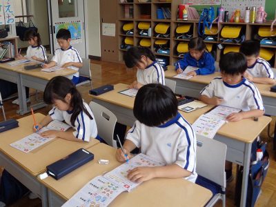 生活科の学習で、先生の仕事について調べています。