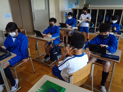 まずは、個人で考えて、ロイロノートのカードに記録して、チームの提出箱に提出。その後、そのカードをチームのメンバーで共有して考えをまとめました。