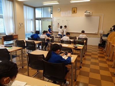 6年生教室の発展クラスは「円の面積」に続いて「割合」の学習に取り組んでいます。