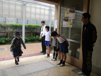 5/11金【挨拶・朝体操・鉢植え・給食・避難訓練・スポ教】