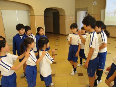 まずは、英語じゃんけん列車です。盛り上がりました。