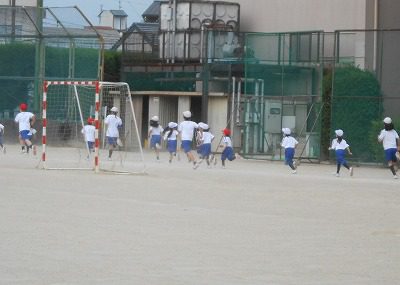 今日は、1年生も一緒にマラソンです!6年生は5分間を走り終えた後でしたが、「1年生と一緒に走りたい!」ともう一周グランドを走っていました。