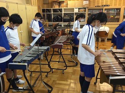 メロディ・細かな動きの伴奏・低音伴奏に分かれて練習しています。中には、一つの楽器の中で、低音&メロディや2つの伴奏のように合わせて練習を進めているグループもあります。