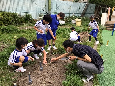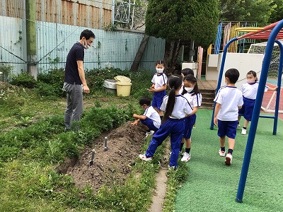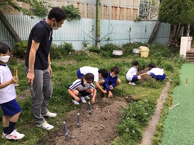 生活科で学習しているサツマイモの苗を植えました。
