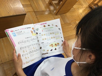 “拍”を感じて歌うことを意識して学習します。“リズムラップ”を楽しんだり、かけ合いの面白さを感じたりする活動へとつなげます。