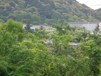 (ビオトープ八池の杜の木々の向こうに、御影堂がはっきり見えています。)