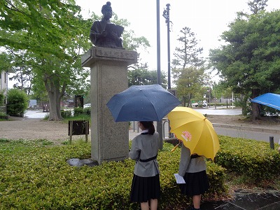 その前に、平安神宮の造営年や吉田松陰の石碑、二宮尊徳(金次郎)像を確認したり、見たりするメンバー達。