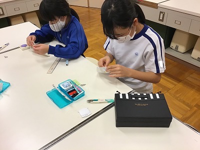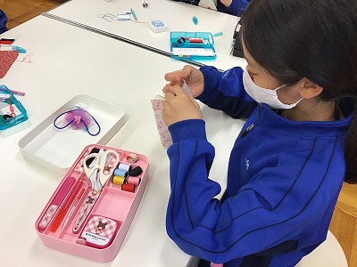 縫い目は穴が開かないように、出来るだけ細かく縫い進めます。4年生も一針一針ていねいに出来ました。