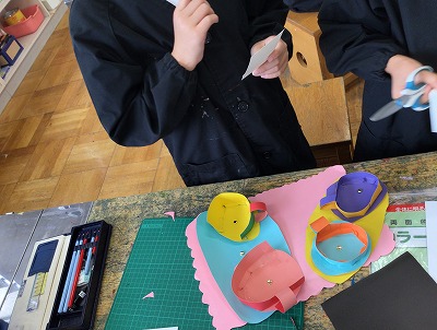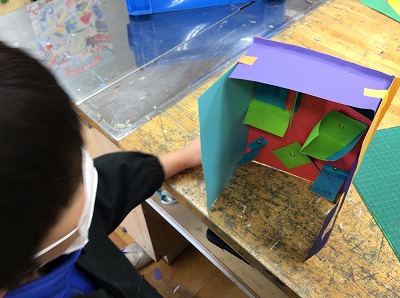 紙が動く様子を見て、イメージを膨らませ、紙工作で表しました。