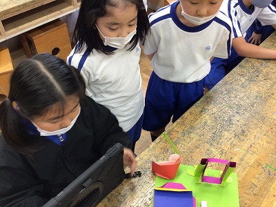 完成したあとは「ここ見て!」のポイントをiPadで写真に撮って、印をつけたり言葉にしたりして、みんなで共有しました。