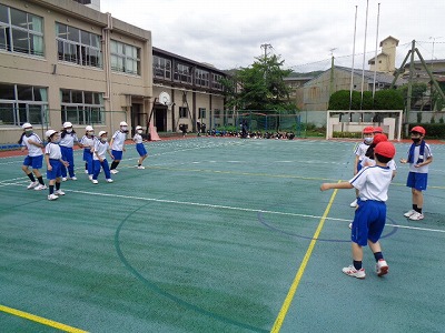 最後に、残った時間で少しだけドッジボールをしました。キャッチしたらすぐに投げてテンポをあげることや、ボールから目を離さずに逃げることなどを意識しながら、ドッジボールもどんどん高学年らしさが見られます。