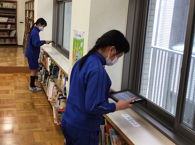 その後は、学校の図書室にも図書館と同じような工夫がないかを探しにいきました。ロイロノートを使って、工夫を写真に収め、まとめていく作業を行いました。