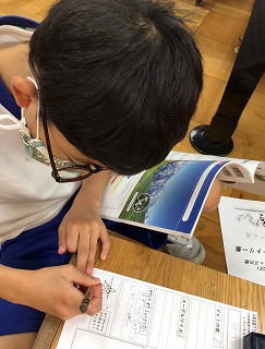4時間目の国語の学習は、教科書から「図書館の達人になろう」という小単元の学習です。学校の図書室と、地域にある図書館では、どのような違いがあるのでしょうか?実際に訪れた人を中心に、どんな違いがあるのかを比べ、「検索コーナー」や「案内マップ」など図書館の工夫について学びました。