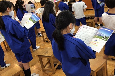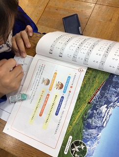 終わりには、4年キッズも英語の歌詞に挑戦です。こっそり練習して、ミスターヨコヤマやポール先生に聞いてもらおう!と話しています。