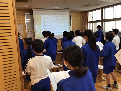 全校キッズで練習中の「♪赤い屋根の家」を歌唱しています。6年生の高い音域の声が優しく美しく、この歌のイメージにぴったりです。