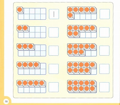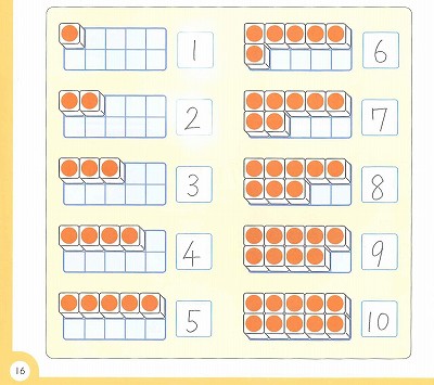 ブロックを みて、あと いくつで10になるかを かんがえて みましょう。