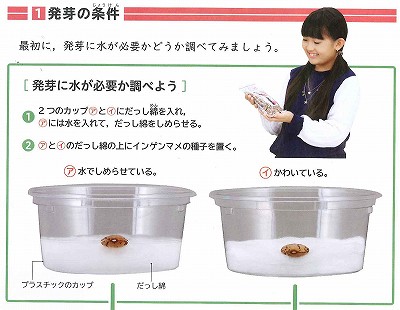p26「発芽に水が必要か調べよう」と「実験1-1」「実験1-2」の3つの実験です。