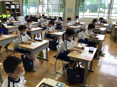 今日の生活科は「先生にインタビュー」をしました。日頃親しみある先生方ですが、どんな場所でどんなお仕事をされているかを教えてもらい、自分達との関わりを知る学習です。