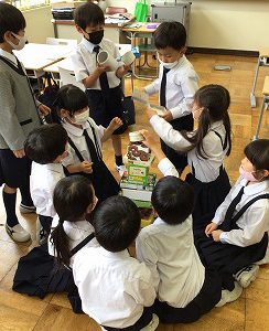 いろいろなはこを使って、かたちの学習を始めました。