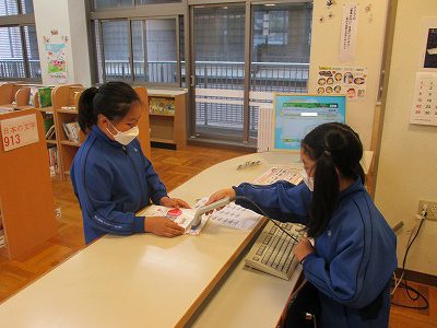 ブックワールド係のメンバーが交代しながら、貸し出し手続きをしてくれます。