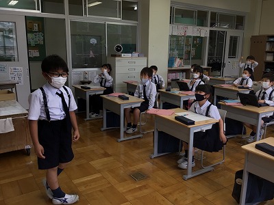 日々ライティングしてきた英単語の振り返りや、文字音の確認をしました。これまで学習してきた"It's a fine day." "Let's have fun!"などの英語フレーズにも触れました。