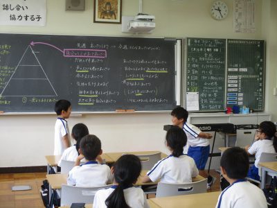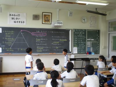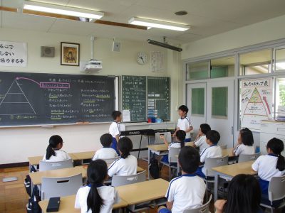 学級活動の時間に、あいさつステップ表NO.2を作るための話し合いをしました。
