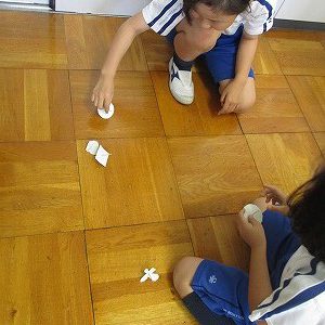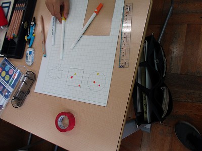 回すと、どんな形のこまでもまるい形に見えて、書いた点も円の形に見えました。