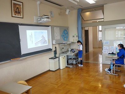 タブレットのプレゼンテーションアプリを使って「暖かい沖縄のくらし」「寒い北海道のくらし」のいずれかを選び、自分で決めたテーマに沿ってまとめてきました。ようやく完成しだしたので、今日は試しに2人の児童がチャレンジしました。スライドを自分で作成し、タイミングを考えながらスライドを切り替え、ときには写真やイラストをズームしながら、とても初めてとは思えないわかりやすい発表をすることができました。