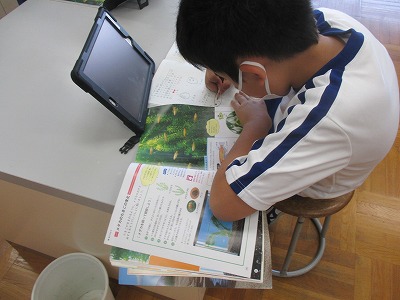 今日は図書室で、読書の時間をとりました。最初の約10分間は、係の児童が「しにがみさん」の読み聞かせをしてくれました。昨年度からの恒例だそうで、図書室にあるクッションを手際よく移動させ、密を避けながらも、とても上手に読み聞かせをしてくれました。聞いている児童も楽しめた様子でした。