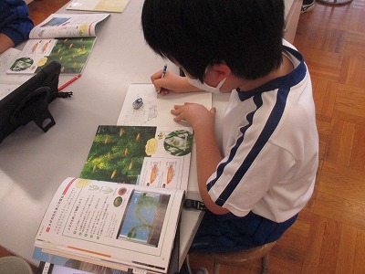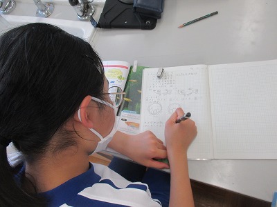 最後に、教科書を参考にして、メダカを家庭で飼う手順を調べてノートにまとめました。